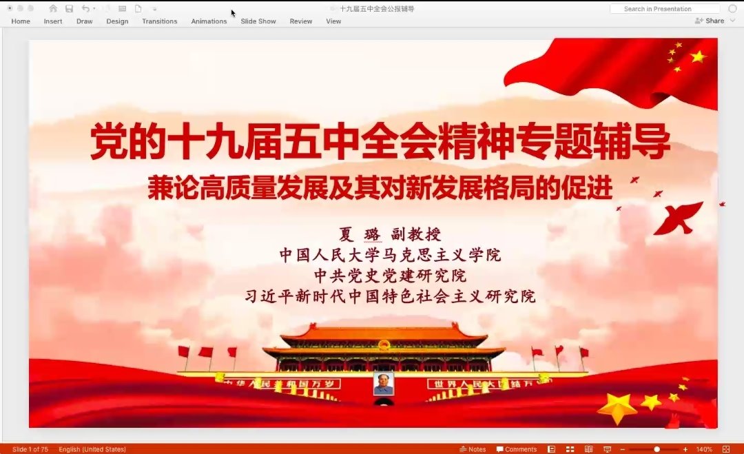 中国人民大学夏璐副教授通过腾讯会议为万象城awcsport官网师生党员讲党课