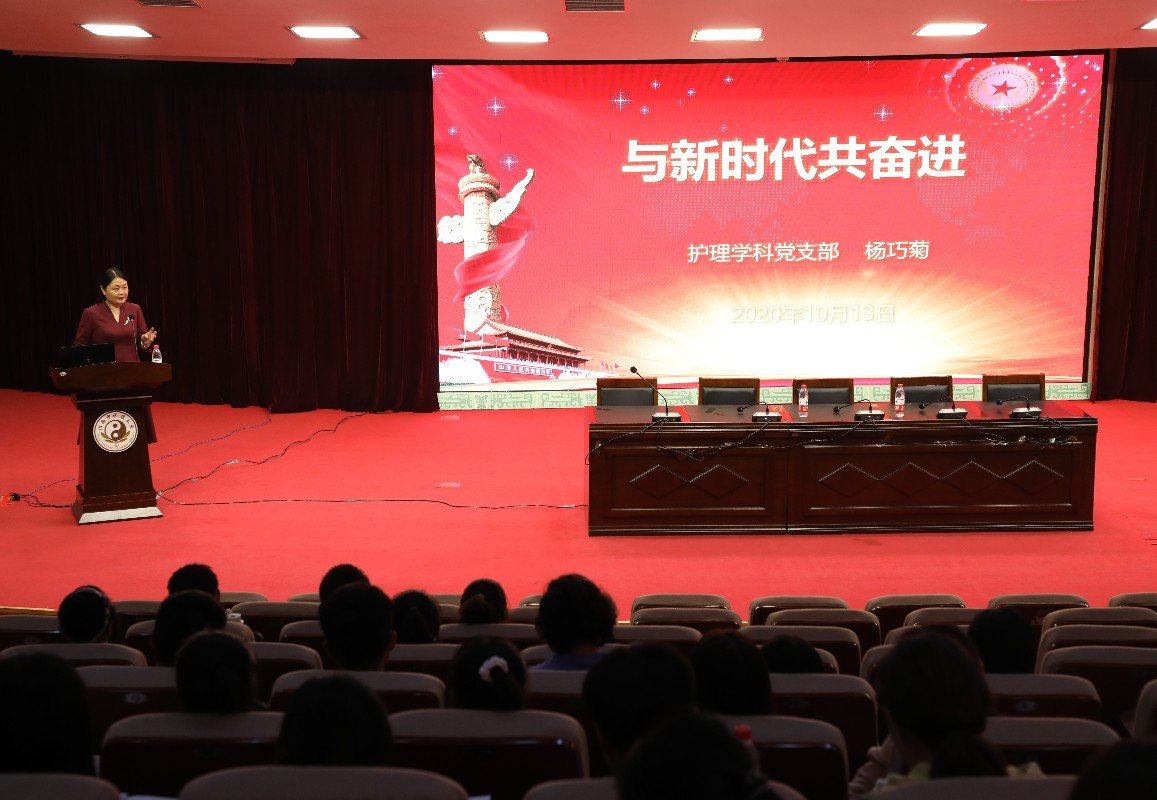 在本期培训课程中,杨巧菊老师紧紧围绕中国共产党的性质、党的指导思想等理念分别对中国特色社会主义新时代、护理专业发展现状、习近平五四青年讲话以及努力做新时代不懈的奋斗者四个方面展开论述。杨老师的讲话旁征博引,深入浅出,使同学们真正掌握了党的核心,党的先进性以及党的行动指南。最后,杨巧菊老师希望同学们端正入党态度,提高思想觉悟,早日投身到建设特色社会主义伟大事业中去。另外,课程中杨老师用独特的语言将理论知识讲的生动活泼,极大的提高了同学们的学习热情。