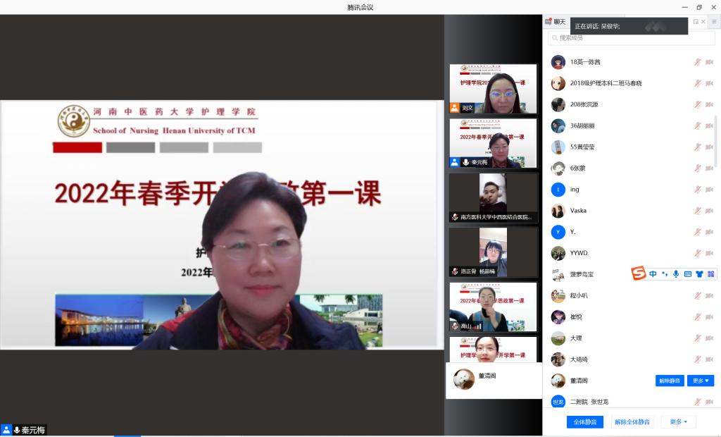 本网讯(文/吴俊华 图/刘文)根据学校“关于上好2022年春季开学思政第一课的通知”,利用2022年春季返校开学的重要契机,2022年2月23日19:30-21:00,依托腾讯会议平台,万象城awcsport官网召开2018级实习学生“开学思政第一课”,副院长秦元梅主讲,万象城awcsport官网教学办、学工办老师及全体2018级毕业实习学生参加线上学习。