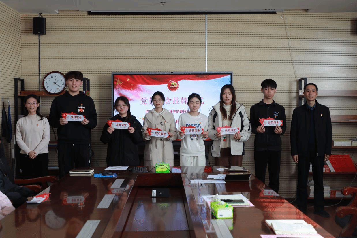 牛乐在总结中对加强学生党员队伍建设、发挥示范引领作用提出三点要求。一是敢于亮明党员身份。要珍惜党员身份所赋予的荣誉,强化责任担当。二是切实做好先锋表率。在思想上做表率,在行动上做榜样,专注学业精进,严守校规校纪,积极营造和谐向上的宿舍文化氛围,助推学院学风建设。三是始终坚守入党初心。要进一步加强政治理论学习,坚定理想信念,学用结合,积极参与社会实践,发挥专业优势为身边同学和社区群众办实事、解难题。最后,学院领导为党员宿舍颁发牌匾并一同前往宿舍楼完成挂牌。