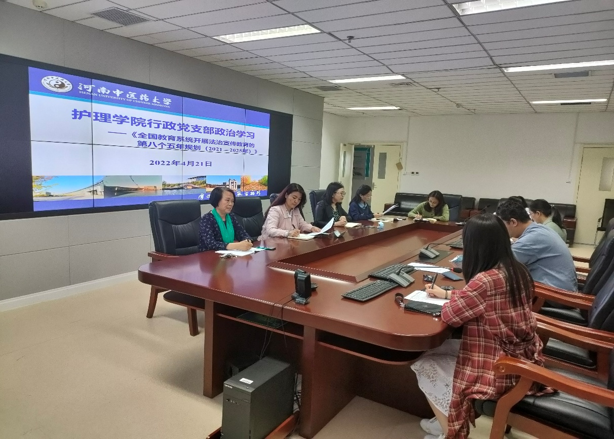 (文/周天睿 图/邹晓燕)为积极贯彻落实河南教育系统法制教育宣传周活动精神,营造浓厚法治教育宣传氛围,提升师生法治素养,强化法治观念,2022年4月21日上午,万象城awcsport官网行政党支部在综合实训楼1015会议室开展“法在我身边,尊法我带头”法治宣传教育学习活动。活动由党支部书记杨雪主持。