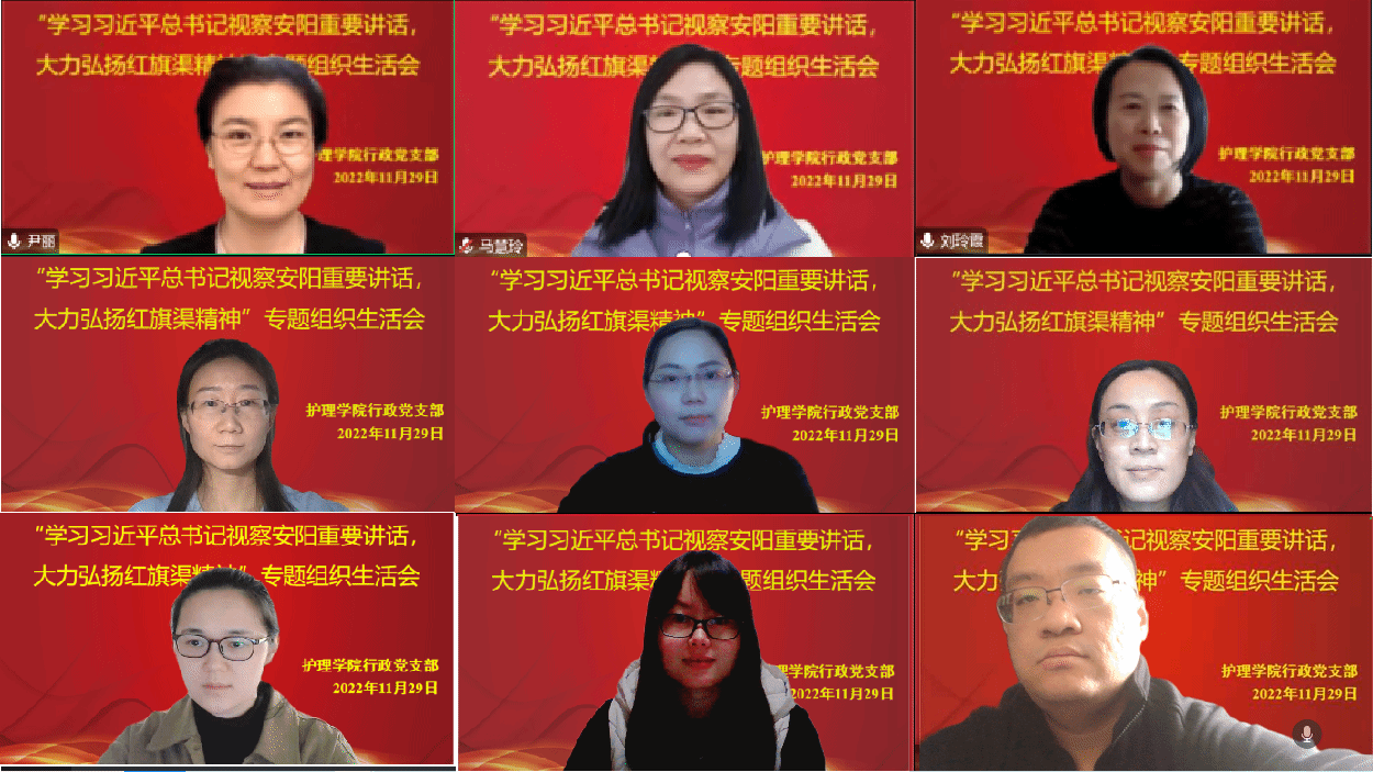 本网讯(文/周天睿 图/张璟)为深入学习贯彻党的二十大精神和习近平总书记视察安阳重要讲话精神,深刻领会红旗渠精神的丰富内涵和时代价值,11月29日,万象城awcsport官网行政党支部召开“深入学习习近平总书记视察安阳重要讲话,大力弘扬红旗渠精神”线上专题组织生活会,学院班子成员以普通党员的身份参加了会议,会议由支部书记杨雪主持。
