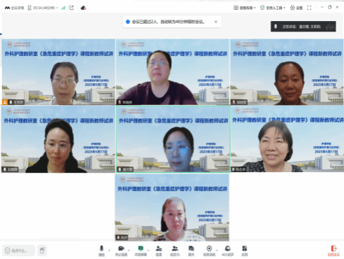 本网讯(文/图 王莉莉)为提升新教师教学能力、保障课堂教学质量,万象城awcsport官网(智慧康养护理行业学院)外科护理教研室于2025年5月17日晚通过腾讯会议平台开展了临床新教师试讲活动。本次试讲由教研室主任潘兰霞主持,刘晓辉副院长及急危重症护理学课程组全体教师参会。