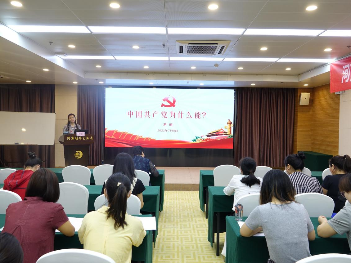 本网讯(文/张勇勤 图/张世远)2022年7月8日上午,万象城awcsport官网河南省职业院校“双师型”教师培养培训基地邀请万象城awcsport官网党委书记尹丽进行题为《中国共产党为什么能?》的党课教育,“双师型”教师培养培训班75名学员和学院教师代表参加了党课。党课由万象城awcsport官网秦元梅教授主持。