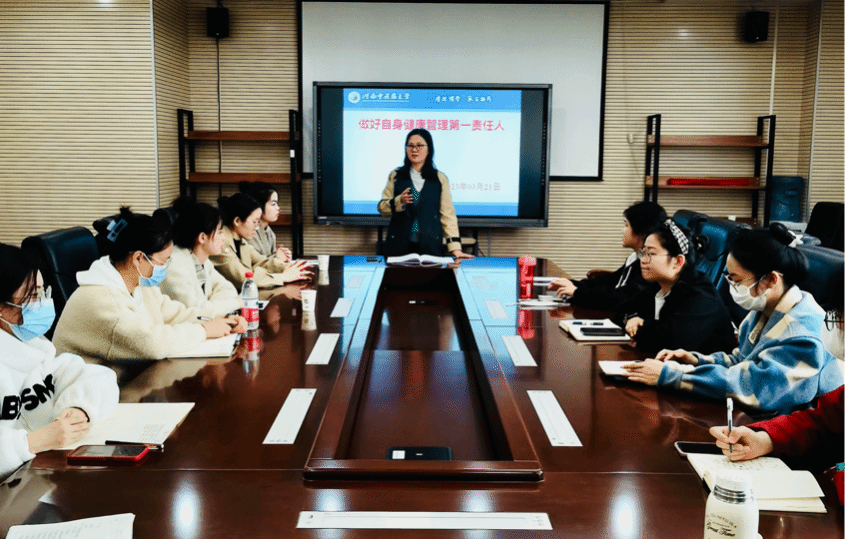 科研与研究生办公室井晓磊科长聚焦前期问卷调查出来的学生困惑,对实习、科研等问题进行了答疑解惑。辅导员吕素老师聚焦现实问题,与同学们进行了学习党的二十大精神的主题讨论,引领同学们全面学习把握党的二十大精神,勇于奋斗、创新。接下来,吕素老师分享了春季传染病预防的相关知识,教导同学们做好自身健康管理第一责任人,学会自我调节,保持身心健康。同时,吕素老师对同学们的学习、生活、就业、与导师相处等个人成长发展的关键问题进行了指导。整个过程中,老师们的讲解热情亲切,同学们认真听讲,积极发言,师生交流气氛融洽。