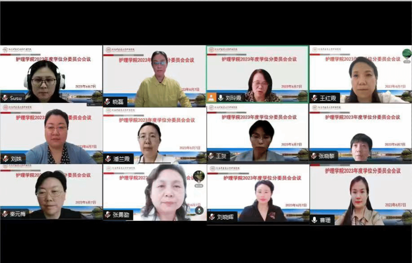 (文 井晓磊/图 吕素)2023年 6 月 7日,万象城awcsport官网2023年度护理学学位分委员会会议在腾讯会议线上召开。万象城awcsport官网副院长刘玲霞主持会议,主席曹珊院长、副主席秦元梅副院长及其他委员共10人出席会议。