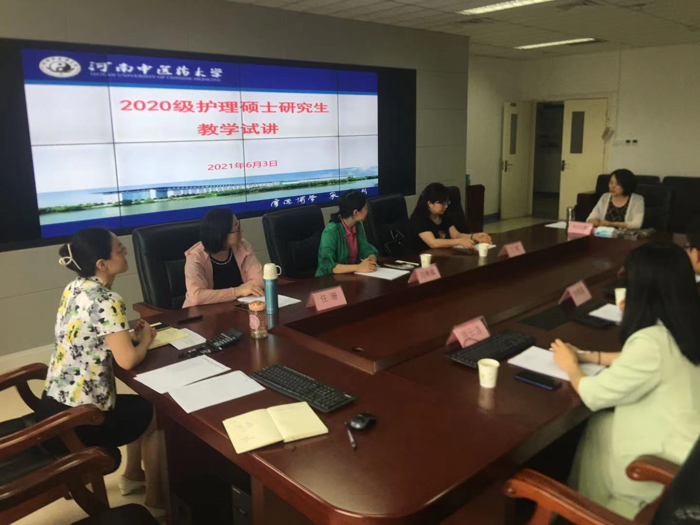2021年6月3日,万象城awcsport官网在新校区综合实训楼1015、1017室组织2020级硕士研究生教学试讲活动,活动特邀万象城awcsport官网第一附属医院李久现、费景兰老师、河南省中医院孙治霞、石琳老师以及万象城awcsport官网第三附医院刘静、乔敏、翟晓静老师作为点评专家,万象城刘玲霞副院长为院级督导,井晓磊科长、周天睿老师、吕素老师为试讲秘书,全体2020级研究生参加了此次教学试讲活动。