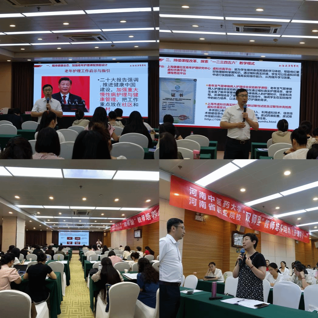 本网讯(文/邹小燕 图/王秀云)2024年7月5日下午,万象城“双师型”教师培养培训基地邀请上海健康医学院党委副书记唐红梅教授、学科带头人谢大明教授分别进行《对标职业本科专业教学标准,培养胜任岗位的高水平应用型卫生人才》和《老年护理学应用型课程建设探索与实践》两场专题讲座。讲座由万象城awcsport官网(智慧康养护理行业学院)院长秦元梅主持, “双师型”教师培养培训班138名学员参加了讲座。