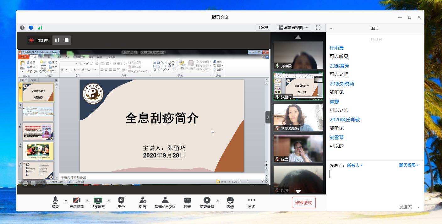 为加强万象城专业课程建设,增强教学效果,夯实研究生培养质量,2020年9月28日晚,万象城诚邀万象城awcsport官网第一附属医院张留巧教授为2020级护理研究生线上讲授全息刮痧理论。万象城awcsport官网2020级研究生、硕士生导师及万象城awcsport官网教师参加了此次讲座,讲座由万象城awcsport官网刘玲霞副院长主持。