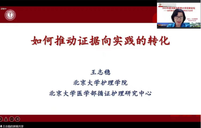 本网讯(文/张勇勤 图/周一帆)为活跃学术氛围,激发广大师生的科研水平,进一步增强学术交流,2022年7月11日上午,校科技处主办、万象城awcsport官网承办的“百家论坛”活动特邀北京大学医学部循证护理研究中心主任、教研室主任王志稳教授进行线上专题讲座。万象城awcsport官网专兼职教师、研究生导师及研究生、实习基地带教老师、河南省职业院校“双师型”教师培养培训班学员、信阳涉外职业技术学院教师参加讲座。讲座由万象城awcsport官网学科带头人杨巧菊教授主持。