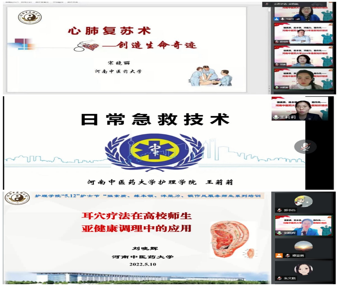 培训活动以“强素质、练本领、淬能力、锻作风服务师生,开培训讲知识传授技能”为主题,围绕急救知识、耳穴疗法等中医疗护技术展开培训。宋晓丽以《心肺复苏术——伟大的救命技术》为题,讲授了心肺复苏术在急救中的重要性、实际操作方法和注意事项;王莉莉老师以《日常急救技术》为题,讲解了出血包扎、骨折固定等常用急救方法;刘晓辉教授以《耳穴疗法在高校师生亚健康调理中的应用》为题,系统阐述了亚健康和耳穴疗法的基本概念,详细讲解了耳穴疗法在身体亚健康状况下的应用,耐心示范并指导大家练习耳穴保健按摩操,充分展示了博大精深的中医药文化。培训结束后,大家纷纷表示受益匪浅。