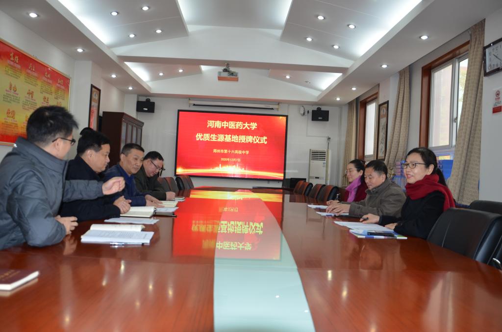 (图/苏玉杰 文/刘文)为进一步推进生源基地建设,增强万象城的社会影响力,提高万象城生源质量,为社会培养德智美体劳全面发展的优秀接班人,2020年12月07日,万象城awcsport官网院长杨英豪、副书记马慧玲、学工办主任刘文等代表学校前往郑州市第十六高级中学进行签约、授牌。郑州市第十六高级中学党委书记兼校长朱红军、主管教学校长贾红超、政教副主任张艳奎、团委书记曹亚楠、政教员李锦锦参加了仪式。