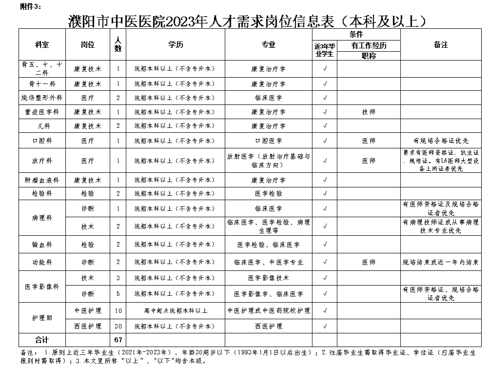 3.濮阳市中医医院2023年人才需求岗位信息表(本科及以上)
