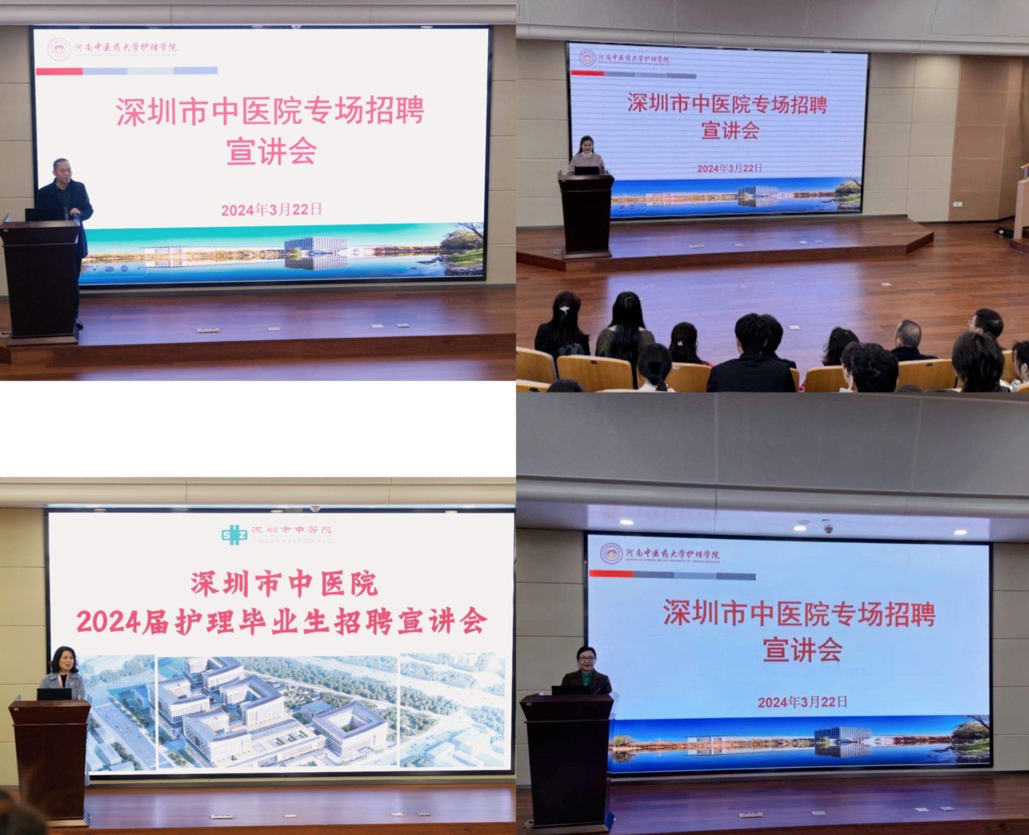 宣讲会现场,曹珊向深圳市中医院表示感谢和欢迎,介绍了万象城awcsport官网概况、办学特色和近些年在专业建设、人才培养等方面所取得的成绩,期待加强与深圳市中医院的合作交流,做好护教协同育人。深圳市中医院党委书记蔡本辉简要介绍了医院情况和人才引进培养的政策,作为用人单位肯定了万象城护理毕业生的岗位胜任力,表示将持续与万象城awcsport官网加强院校合作。