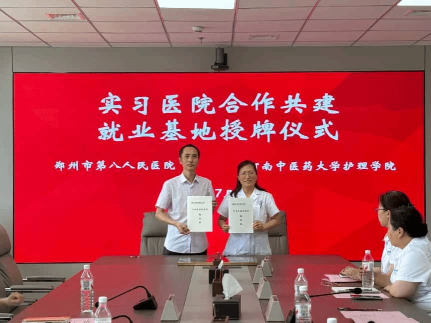 本网讯(文/图 王琪琪)为精准对接护理专业毕业生就业需求,拓展学生职业发展空间,全力打通高质量就业通道,2025年7月1日,万象城awcsport官网(智慧康养护理行业学院)党委书记牛乐、副书记杨雪、毕业班辅导员王琪琪一行3人赴郑州市第八人民医院(宜居健康城院区)开展访企拓岗促就业行动。郑州市第八人民医院专职副书记王珩,副院长孔德荣、黄伟,科教科科长霍军,护理部主任史丽等相关科室负责人及病区护士长代表参加活动。