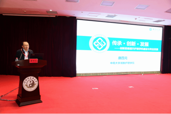 唐四元教授以“创新思维提升护理学科专业发展”为题进行了专题讲座。他首先结合个人教育、工作经历介绍了护理学科建设的重要性。之后,重点分析了当下护理学科发展中的困境与不足,并结合中南大学护理学科建设发展讲授了创新思维如何提升护理学科建设与专业发展。最后,唐四元鼓励护理专业师生要以创新思维为导向,在传承中创新、在交流中发展。