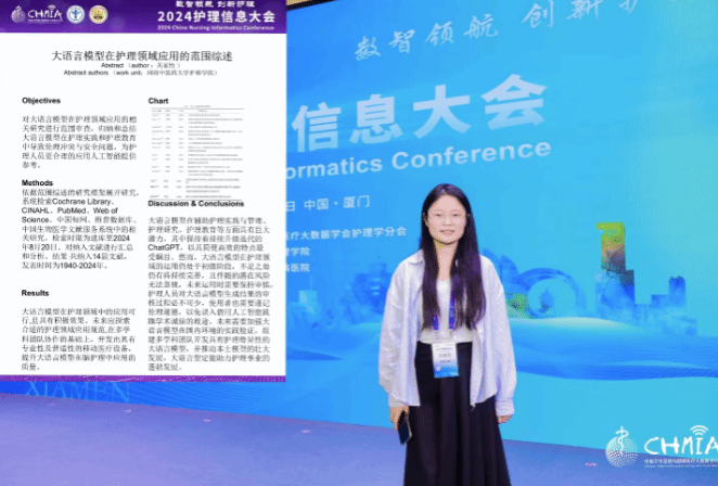本网讯(图/文 关家怡) 2024年11月15日-17日,2024护理信息大会在厦门隆重召开。万象城护理学专业负责人、中国卫生信息与健康医疗大数据学会护理学分会常委杨巧菊教授受邀担任主持嘉宾,2023级研究生关家怡参加会议论文壁报交流。