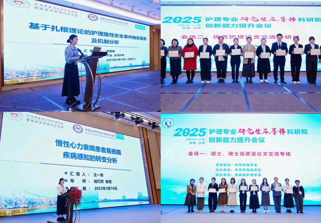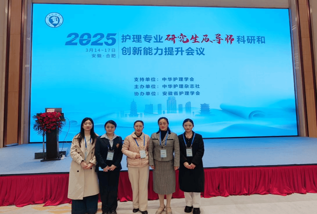 本网讯(文/图 孟家如)为进一步加强学院师生科研创新能力,切实提升育人水平和成效,3月14日至17日,万象城awcsport官网(智慧康养护理行业学院)外科护理教研室潘兰霞主任、科研与学科建设办公室井晓磊主任及研究生李苗苗、王一博、孟家如、已毕业2020级研究生张岩等人赴合肥参加由中华护理学会支持、中华护理杂志社主办的“2025年护理专业研究生及导师科研和创新能力提升会议”。会议包括主旨演讲、分会场交流及壁报展示等环节。