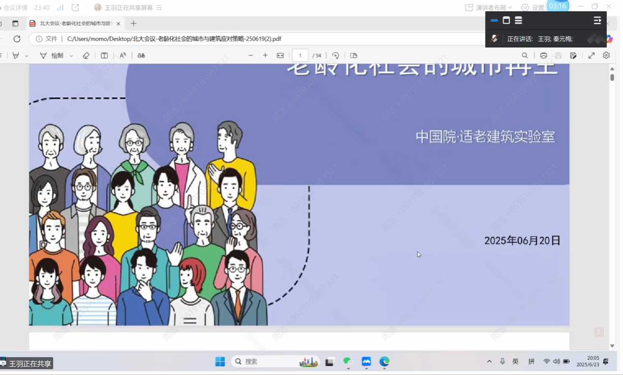 王羽教授作为中国建筑设计研究院适老建筑实验室主任,研究员,博士,长期从事适老健康环境设计与研究,牵头创建我国首个老年人环境行为学实验室——中国院适老建筑实验室。讲座中,王羽教授围绕“老龄化社会的城市再生”主题,从城市规划、建筑设计、社会服务等多学科视角,深入探讨了老龄化背景下城市空间优化、适老化设施建设及社区服务体系构建等关键问题。王教授结合国内外典型案例,分析了当前我国老龄化社会面临的挑战,并提出了创新性的解决方案,为参会人员提供了跨学科的研究思路和实践启示。互动环节中,针对医院适老化改造重点、医养设施联动等问题,王羽教授结合地域特点与案例提出解决方案。