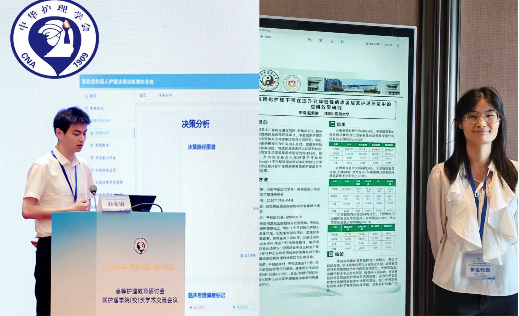 此次会议以“创新驱动·智慧赋能·融合发展”、“领航护理青年智慧·携手共创健康未来”为主题。会议设高等教育分会场和学生专题分会场,围绕主要包括护教协同下护理人才培养模式创新、数智护理与学科交叉融合实践、护理学生创新创业成果展示与职业规划等十大核心议题展开深入研讨,为护理教育的高质量发展和护理人才的全面成长注入新活力。会中,众多行业内的顶尖专家带来了精彩的主题报告,他们围绕护理学本科专业认证对教学管理的启示、提升护理硕士专业学位研究生教育质量、护理+X跨学科课程的建设等多方面主题发表主旨演讲。万象城2023级本科生赵紫琳就《基于AI虚拟病人系统的护理临床决策能力智能化训练模式构建与应用评价》作大会交流,2023级本科生王楠投稿论文作壁报展示。