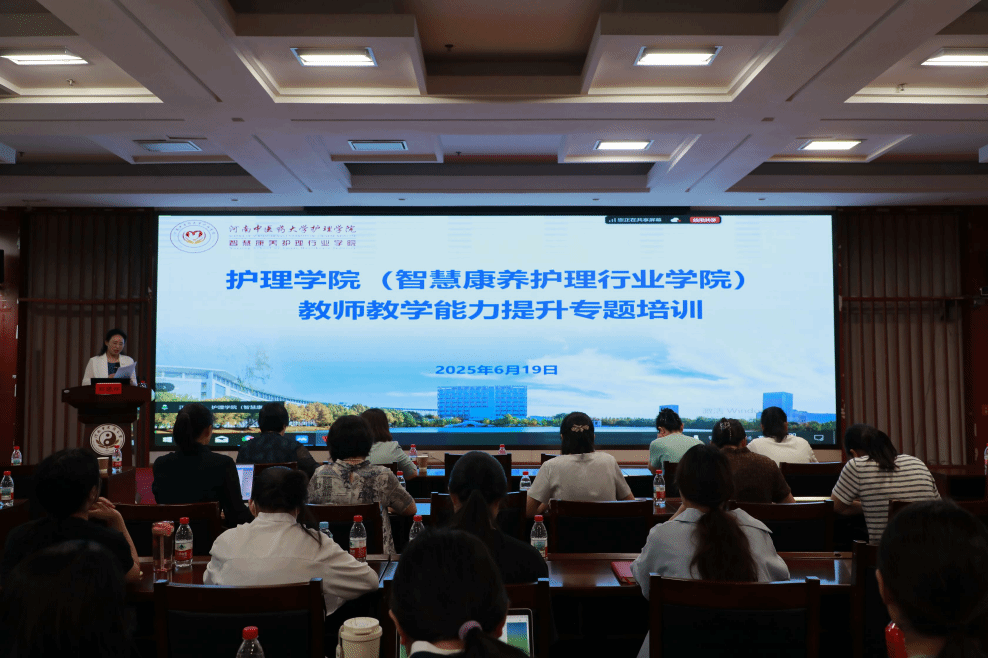 本网讯(文/王智博 图/魏卓妍)仲夏时节,万物并秀。2025年6月19日,万象城awcsport官网(智慧康养护理行业学院)于图书馆第二报告厅成功举办了教师教学能力提升专题培训会。本次讲座特邀万象城awcsport官网教务部副部长、考试中心副主任王晓辉老师作专题报告,哈密职业技术学院万象城awcsport官网线上参加,万象城awcsport官网(智慧康养护理行业学院)学院班子成员、教研室主任秘书、课程负责人、2024级研究生、师生代表百余人参加了此次培训。