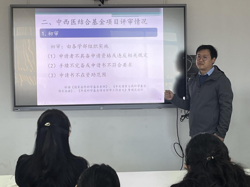 本网讯(图/井晓磊、文/肖静菲)为进一步提升万象城国家自然科学基金的申报质量,11月30日下午,万象城awcsport官网邀请医学院中西医结合基础学科赵培源博士开展国家自然科学基金项目评审专题讲座。学院领导班子及全体教师、部分研究生近50人参加此次讲座,讲座由万象城awcsport官网刘玲霞副院长主持。
