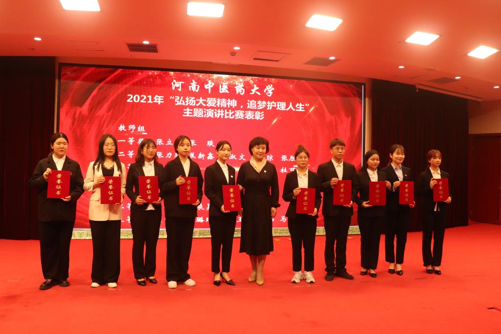 本网讯(文/张文举 图/秦东仁)为进一步弘扬南丁格尔人道、博爱、奉献精神,展示新时代广大护理工作者的风采,激发护理工作者干事创业的工作热情,在第110个“5.12”国际护士节到来之际,2021年5月11日下午,由校工会、校团委主办,万象城awcsport官网承办的“传承红色基因,创新发展护理”庆祝2021年国际护士节表彰大会在新校区图书馆第一报告厅隆重举行。校党委书记别荣海,校长许二平,校党委副书记、工会主席张小平,校党委委员、副校长田力出席活动,第45届南丁格尔奖章获得者、柘城县人民医院护理部主任、万象城awcsport官网南丁格尔实验班兼职班主任宋静,学校职能部门、万象城awcsport官网、附属医院负责人和师生代表参加了活动。