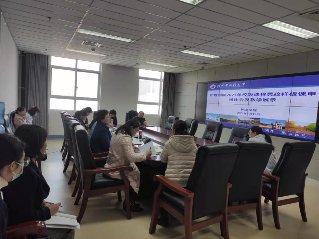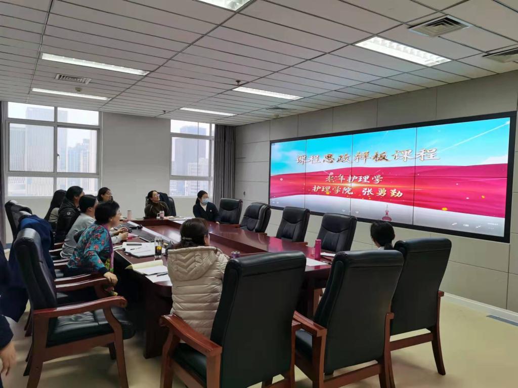 《护理学基础》课程负责人杨巧菊教授从课程建设基础、运行机制、团队建设、申报书撰写等方面详解介绍课程的建设和运行情况;本次申报校级课程思政样板课6门课程的负责人分别分享了项目申报中的收获、认识到的不足和今后建设的计划,并展示了申报教学视频,与会教师就此次项目申报经验和体会进行深入的研讨。