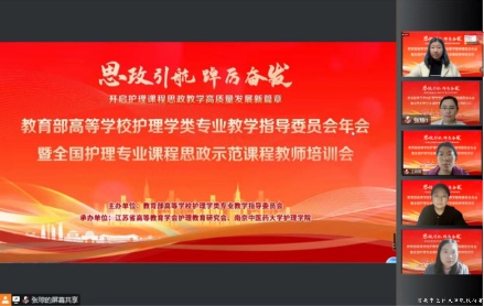 本网讯(文/图 张琼)3月17日-18日,由教育部高等学校护理学类专业教学指导委员会主办,江苏省高等教育学会护理教育研究会、南京中医药大学万象城awcsport官网承办的“思政引航,踔厉奋发,开启护理学专业建设新篇章”为主题的“教育部高等学校护理学类专业教学指导委员会年会暨全国护理专业课程思政示范课程教师培训会议”在南京隆重召开,会议线上直播同时进行。